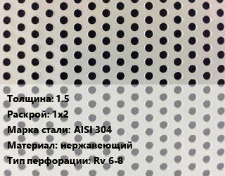 Лист перфорированный 1.5 1х2 Марка: AISI 304 нержавеющий Rv 6-8