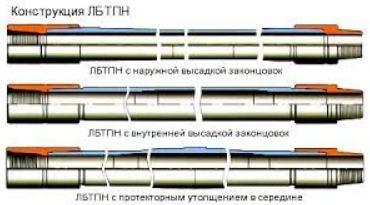 Легкосплавные трубы более тонкие и легкие толщина стенки тут может составлять от 9 до 17 мм. Из-за этого к ним выдвигаются более строгие требования по качеству. Подобные изделия имеют круглую форму и утолщения на концах, с приваренными к ним переходниками, замковыми ниппелями.