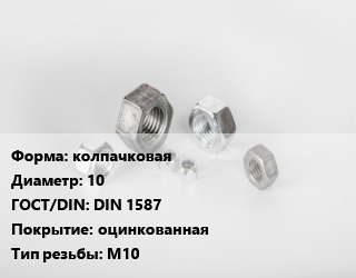 Гайка колпачковая D=10 DIN 1587 оцинкованная М10, кг, по запросу цена от 342.09 ₽ / кг, где купить, условия доставки в Донецке и Донецкой области