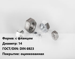 Гайка с фланцем D=14 DIN 6923 оцинкованная, упаковка 50 шт цена от 234.9 ₽ / кг, где купить, условия доставки в Донецке и Донецкой области