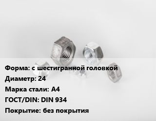 Гайка с шестигранной головкой D=24 Сталь: А4 DIN 934 без покрытия, кг, по запросу цена от 180.01 ₽ / кг, где купить, условия доставки в Донецке и Донецкой области