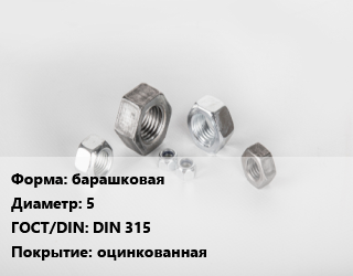 Гайка барашковая D=5 DIN 315 оцинкованная, шт цена от 2.18 ₽ / кг, где купить, условия доставки в Донецке и Донецкой области