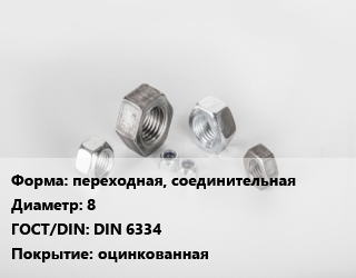 Гайка переходная, соединительная D=8 DIN 6334 оцинкованная, шт цена от 17.59 ₽ / кг, где купить, условия доставки в Донецке и Донецкой области