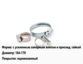Хомут с усиленным запорным винтом и присоед. гайкой D=164-170 оцинкованный, упаковка цена от 219.5 ₽ / шт, где купить, условия доставки в Донецке и Донецкой области
