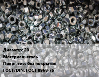 Контргайка 20 сталь без покрытия ГОСТ: ГОСТ 8968-75, шт цена от 24.75 ₽ / шт, где купить, условия доставки в Донецке и Донецкой области