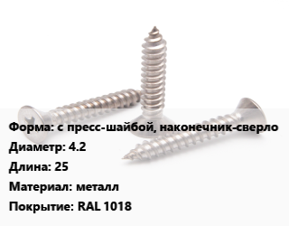 Саморез с пресс-шайбой, наконечник-сверло D=4.2 L=25 металл RAL 1018