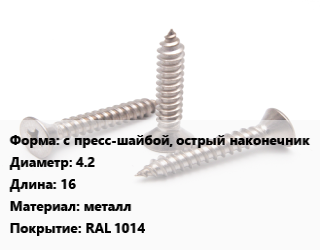Саморез с пресс-шайбой, острый наконечник D=4.2 L=16 металл RAL 1014, шт цена По запросу где купить, условия доставки в Донецке и Донецкой области