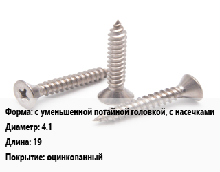 Саморез с уменьшенной потайной головкой, с насечками D=4.1 L=19 оцинкованный