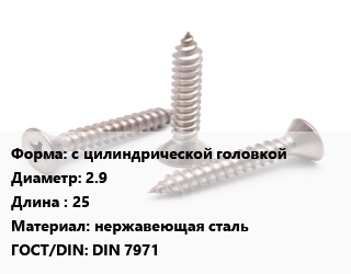 Саморез с цилиндрической головкой D=2.9 L=25 нержавеющая сталь ГОСТ: DIN 7971