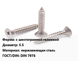 Саморез с шестигранной головкой D=5.5 нержавеющая сталь ГОСТ: DIN 7976