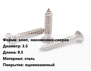 Саморез клоп, наконечник-сверло D=3.5 L=9.5 сталь оцинкованный, шт, для металла цена По запросу где купить, условия доставки в Донецке и Донецкой области