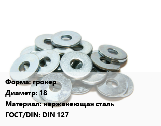 Шайба гровер D=18 нержавеющая сталь ГОСТ: DIN 127, шт, форма B цена от 9.54 ₽ / кг, где купить, условия доставки в Донецке и Донецкой области
