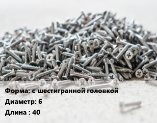 Шуруп с шестигранной головкой 6х40 сталь оцинкованный ГОСТ: DIN 571