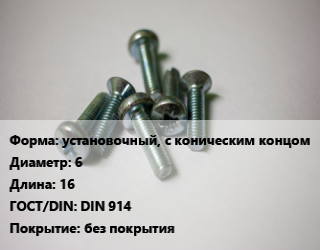 Винт установочный, с коническим концом 6х16 DIN 914 без покрытия