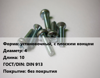 Винт установочный, с плоским концом 4х10 DIN 913 без покрытия