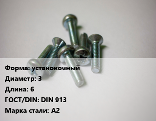 Винт установочный 3х6 DIN 913 Сталь: А2, цена за шт, кг цена от 2.74 ₽ / кг, где купить, условия доставки в Донецке и Донецкой области
