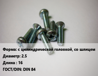 Винт с цилиндрической головкой, со шлицем 2.5х16 DIN 84
