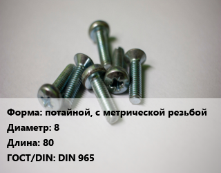 Винт потайной, с метрической резьбой 8х80 DIN 965