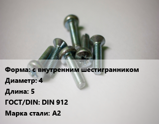 Винт с внутренним шестигранником 4х5 DIN 912 Сталь: A2