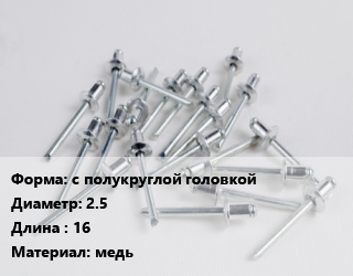 Заклепка с полукруглой головкой 2.5х16 медь, шт цена от 2.35 ₽ / шт, где купить, условия доставки в Донецке и Донецкой области