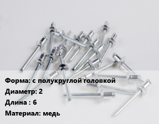 Заклепка с полукруглой головкой 2х6 медь, шт цена от 2.11 ₽ / шт, где купить, условия доставки в Донецке и Донецкой области