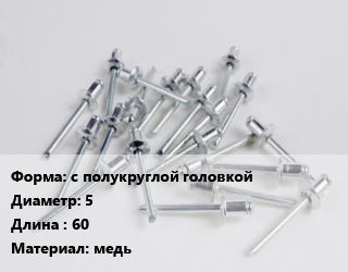 Заклепка с полукруглой головкой 5х60 медь, упаковка 100 шт цена от 173.36 ₽ / шт, где купить, условия доставки в Донецке и Донецкой области
