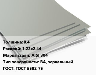 Лист нержавеющий 0.4 1.22х2.44 Сталь: AISI 304 Тип:BA, зеркальный ГОСТ 5582-75, шт, в пленке цена от 5 345 ₽ / т, где купить, условия доставки в Донецке и Донецкой области