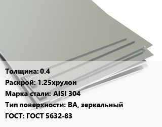 Лист нержавеющий 0.4 1.25хрулон Сталь: AISI 304 Тип:BA, зеркальный ГОСТ 5632-83