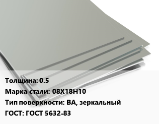 Лист нержавеющий 0.5 Сталь: 08Х18Н10 Тип:BA, зеркальный ГОСТ 5632-83, х/к, в пленке цена от 261 164 ₽ / т, где купить, условия доставки в Донецке и Донецкой области