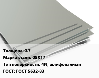 Лист нержавеющий 0.7 Сталь: 08Х17 Тип:4N, шлифованный ГОСТ 5632-83