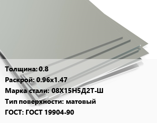 Лист нержавеющий 0.8 0.96х1.47 Сталь: 08Х15Н5Д2Т-Ш Тип:матовый ГОСТ 19904-90
