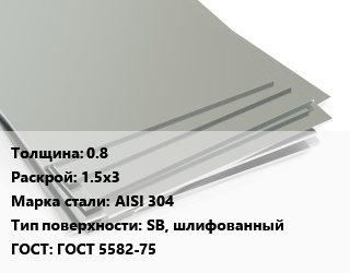Лист нержавеющий 0.8 1.5х3 Сталь: AISI 304 Тип:SB, шлифованный ГОСТ 5582-75