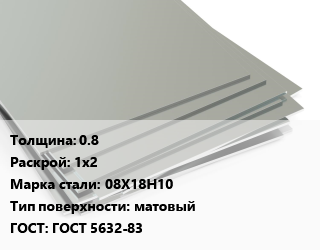 Лист нержавеющий 0.8 1х2 Сталь: 08Х18Н10 Тип:матовый ГОСТ 5632-83