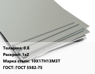 Лист нержавеющий 0.8 1х2 Сталь: 10Х17Н13М3Т ГОСТ 5582-75