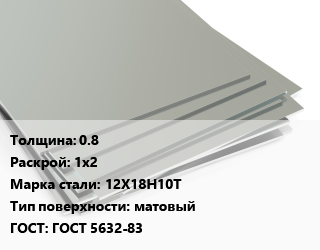 Лист нержавеющий 0.8 1х2 Сталь: 12Х18Н10Т Тип:матовый ГОСТ 5632-83