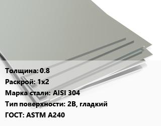 Лист нержавеющий 0.8 1х2 Сталь: AISI 304 Тип:2B, гладкий ASTM A240, м2 цена от 1 768 ₽ / т, где купить, условия доставки в Донецке и Донецкой области