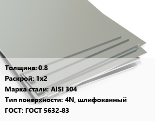 Лист нержавеющий 0.8 1х2 Сталь: AISI 304 Тип:4N, шлифованный ГОСТ 5632-83