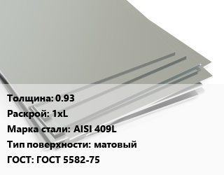 Лист нержавеющий 0.93 1хL Сталь: AISI 409L Тип:матовый ГОСТ 5582-75