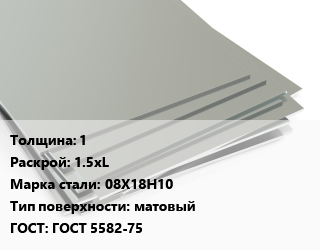 Лист нержавеющий 1 1.5хL Сталь: 08Х18Н10 Тип:матовый ГОСТ 5582-75