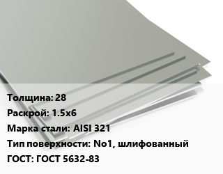 Лист нержавеющий 28 1.5х6 Сталь: AISI 321 Тип:No1, шлифованный ГОСТ 5632-83
