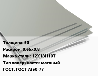 Лист нержавеющий 50 0.65х0.8 Сталь: 12Х18Н10Т Тип:матовый ГОСТ 7350-77