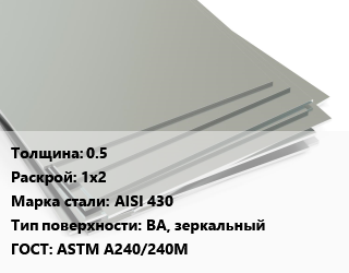 Лист нержавеющий 0.5 1х2 Сталь: AISI 430 Тип:BA, зеркальный ASTM А240/240М, в пленке, 2 сорт цена от 258 825 ₽ / т, где купить, условия доставки в Донецке и Донецкой области