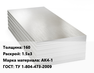 Алюминиевый лист 160 1.5х3 Марка: АК4-1 ГОСТ: ТУ 1-804-473-2009